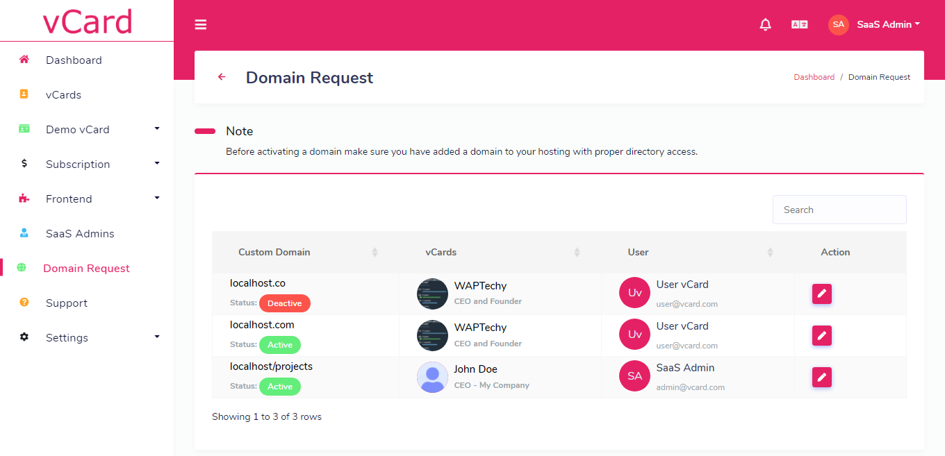 yourdomain.com/settings and enable option Turn off custom domain system1domain.com connected with public_html/1domain directory. Now your user added custom domain 2domain.com. When you add this 2domain.com to your Server / Host it must have same directory as public_html/1domain. Means this both domain can access same content of one website.Again thank you so much for purchase this application. We are trying to add and improve new features regularly. Hopefully you'll enjoy using the app. If you have any query or suggestion or feedback, please contact at Support