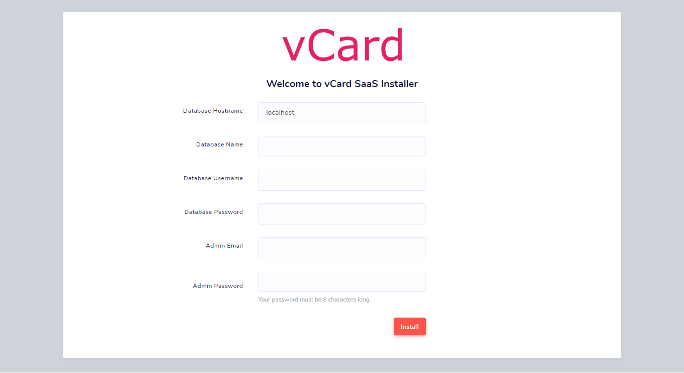 Database Details, if not created databse then create a MySql Database via your web hosting providers Control Panel. Then, enter your Admin Email and Password which will be required to login in the application. This credentials will needed on everytime you login.404 OR 505 error then wait for 30 seconds and refresh the page. Again make sure .htaccess is uploaded.settings section.